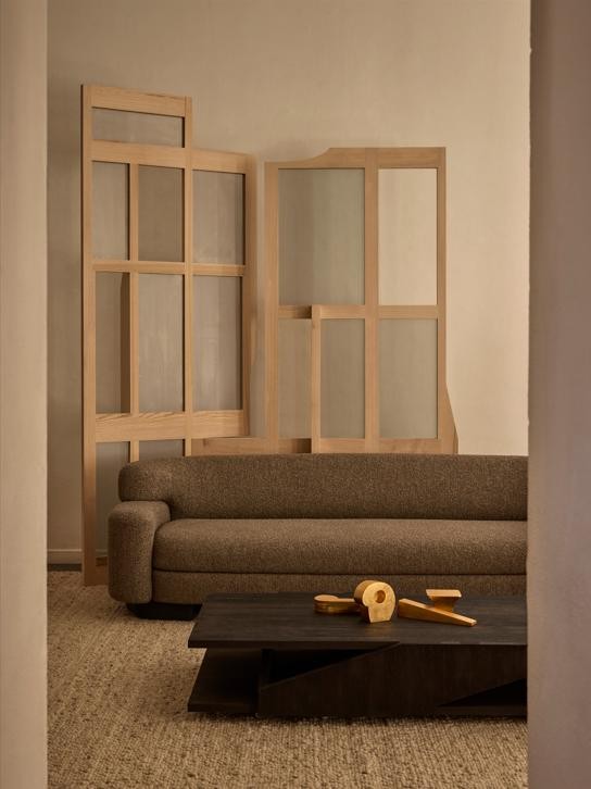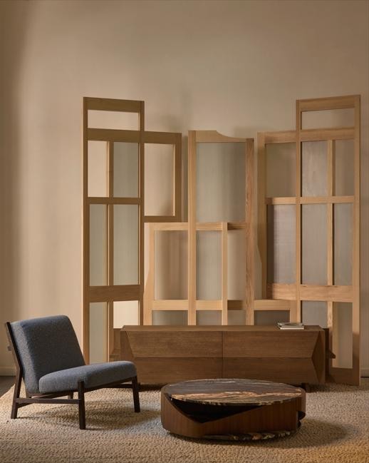 本季新品涵盖了沙发、座椅、餐桌、边几与收纳类家具,每一件都围绕“空间构成”展开探索。设计上依旧保留 Delcourt 标志性的厚重木质结构与纯粹几何形态,在细节处辅以青铜或陶瓷元素,展现材质之间的张力与平衡;色彩上则采用大地色系与温润中性色,呼应法式生活中“不过度设计”的审美逻辑。