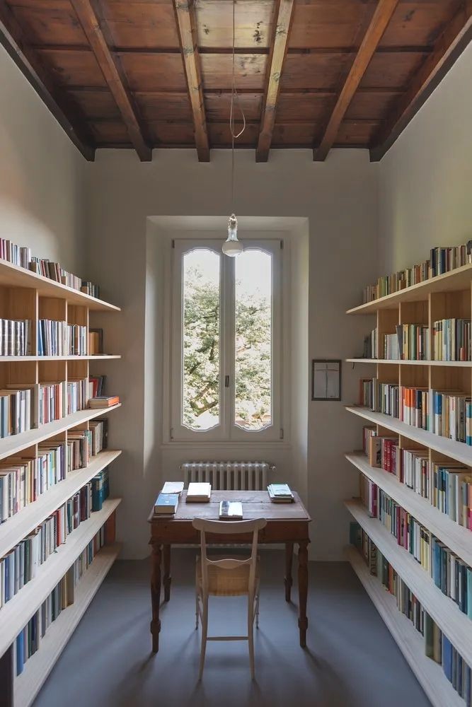 如果能有一间屋子来打造书房,是再好不过的了,可以尽情将喜欢的书籍、书架、装饰画搬进来,简单的桌椅和桌面摆件不会分去注意力,可以专注于书本之中,字句流转之间,阴霾也逐步散去。