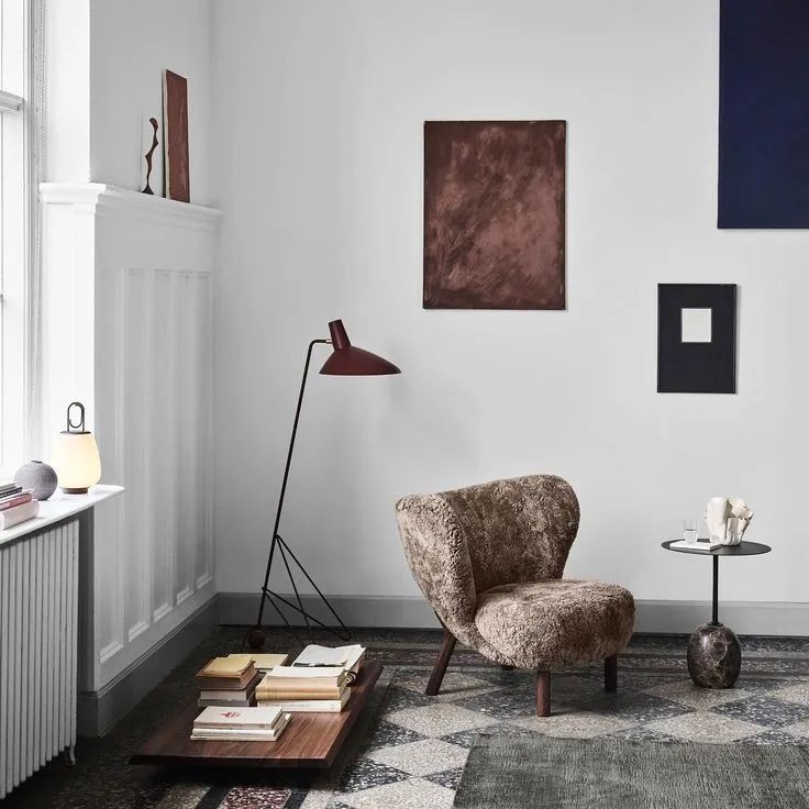 同色系永远是干净、高级的关键,阅读角也完全可以照搬这个方法,同色系的沙发、地毯、桌椅,让角落更简单利落,砖墙的纹路散发出返璞归真的意境,随意堆叠散落的书籍带着几分松弛感,在这里阅读岂不乐哉?