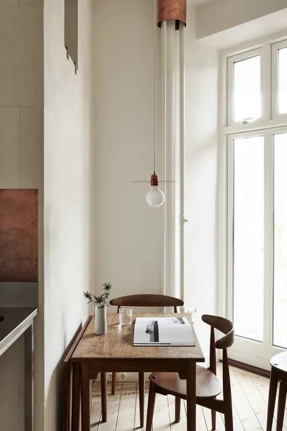 可以DIY的墙面柜,用来收纳书籍、画作之类非常合适,仿若空间里的最佳背景,搭配中古风满满的桌椅,文艺又治愈。