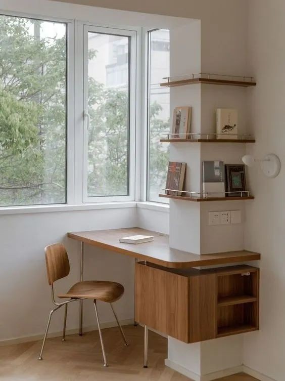 多少人的梦想都是在家拥有一面大大的落地窗,那坐在窗边阅读自然是再好不过的选择,一个蒲团一截墙面延伸的隔板,安静的阅读角就完成了,看累了抬头,白日是蓝天白云,夜晚是星空万里,这一处空间就是心灵的栖居地。