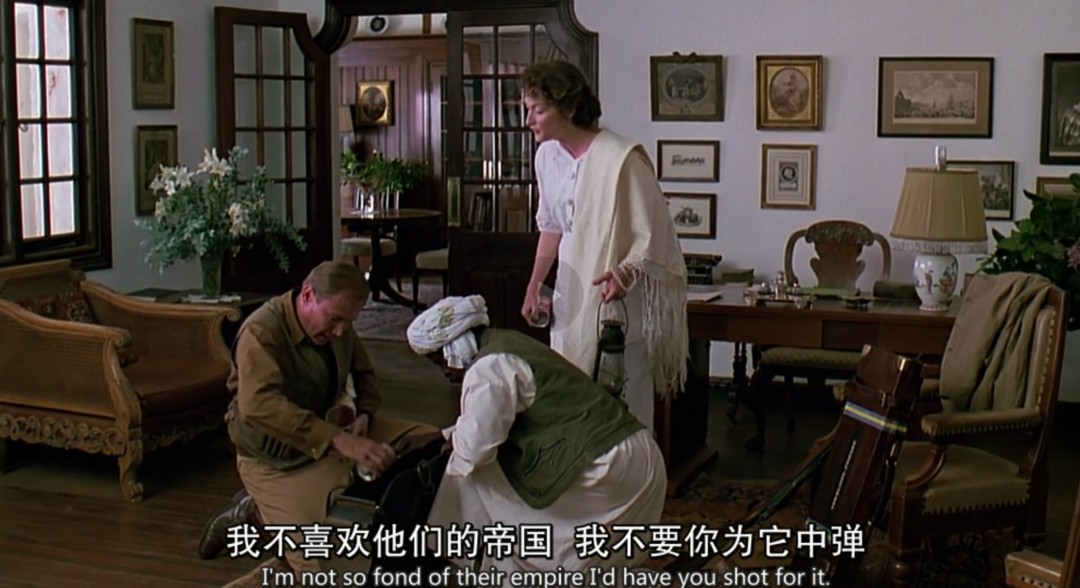 由梅丽尔·斯特里普饰演的女主角卡伦,原本是爱慕虚荣的富家女,为了得到男爵夫人的称号而远嫁东非肯尼亚。