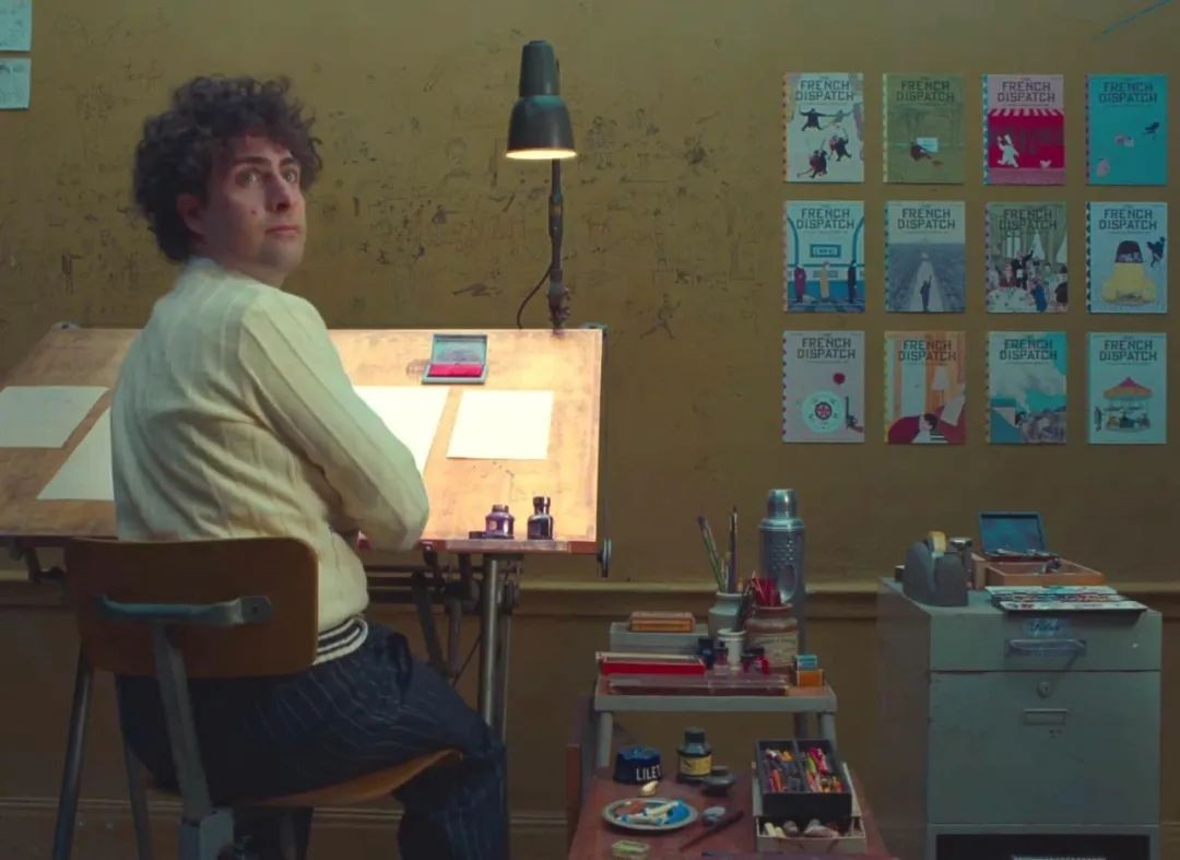被戏称为“给失落纸媒的一封情书”的《法兰西特派》,以虚构的 20 世纪法国城市“无聊小镇”为背景,讲述了杂志编辑小阿瑟·霍维茨将旅行系列专栏转型为《法兰西特派》杂志的故事。3 段故事,充满奇思妙想、奇人奇事和古怪趣味,不难看出韦斯·安德森对《纽约客》传统媒体的致敬和一种人文关怀的视角。