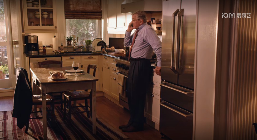 此外,这部片子不仅故事超级好看,男女主的家也相当有看点。70 岁本家中井井有条的衣帽间,透露着他精致而优雅的老绅士品格,一点点仪式感,就会带给生活许多期待。而在女主角朱尔斯的家中,最令人心动的则要属那一张宽阔而整洁的美式岛台,在让空间变得透亮的同时,也营造出明朗、活力和清新的气息。