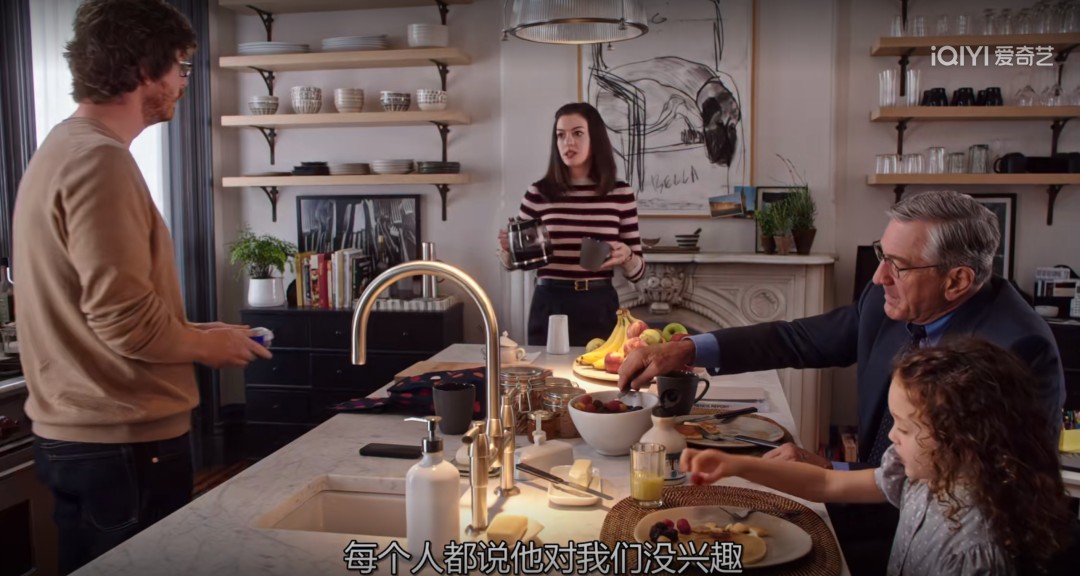 由罗伯特·德尼罗饰演的本是一位70岁高龄的成功商人,但在退休后过了几年随心所欲的生活后,渐感无聊与寂寞,便向由安妮·海瑟薇饰演的女主角朱尔斯创办的时尚电商网站投了一份实习生简历。传统行业退休的高龄实习生?年轻有位的电商创业者?两个世代之间,隔阂着的不仅是年龄、性别更是时代发展之下的多种社会失落问题。