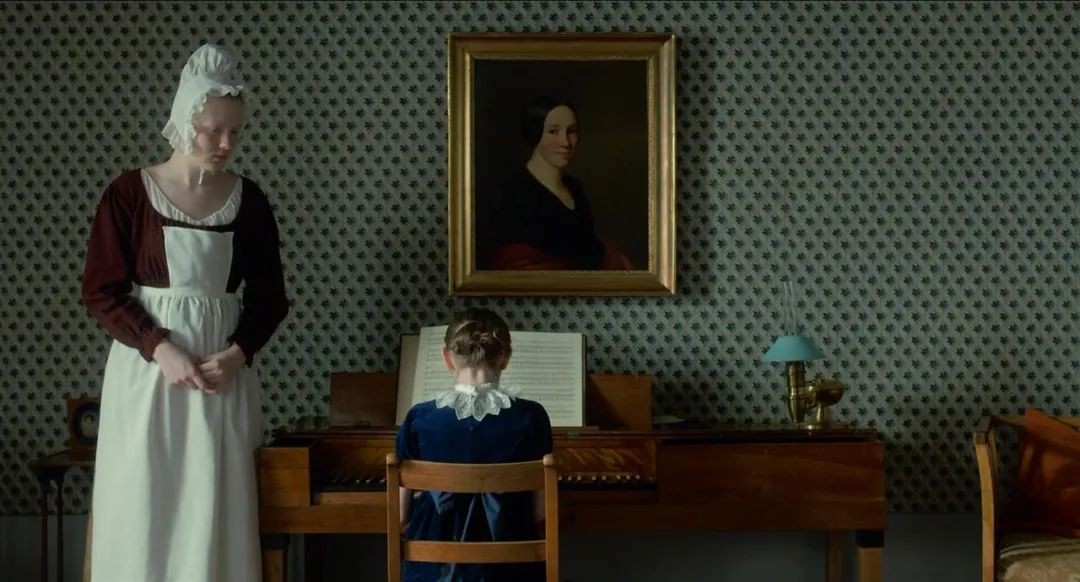 每一帧画面都像是一幅十九世纪的古典主义、浪漫主义的精美油画,冷冷清清的画面基调意外给人一种克制的温暖氛围,充满了德式美学的凛冽、严谨与优雅。