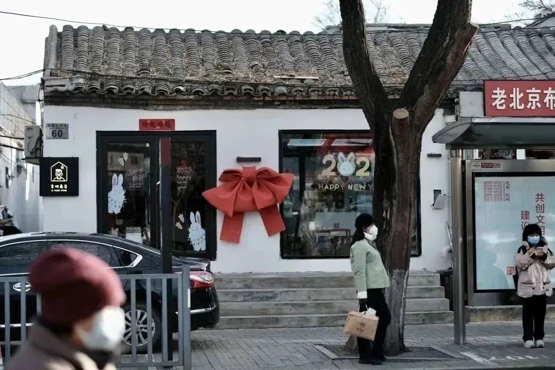 店内保留了老房子的整体结构,露出原始房粱,灰色房檐+白色砖墙,圆形拱门做连接,将两间北房打通,整体明亮温馨,木质的老地板源于童年外婆家的回忆,以南方的房顶老料制成,让人在咯吱咯吱的声响中慢慢被治愈。如果你驻足于店内硕大的落地窗前,可以尽观大隐于市般人来人往的街景~