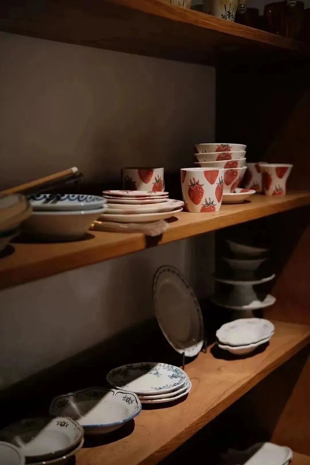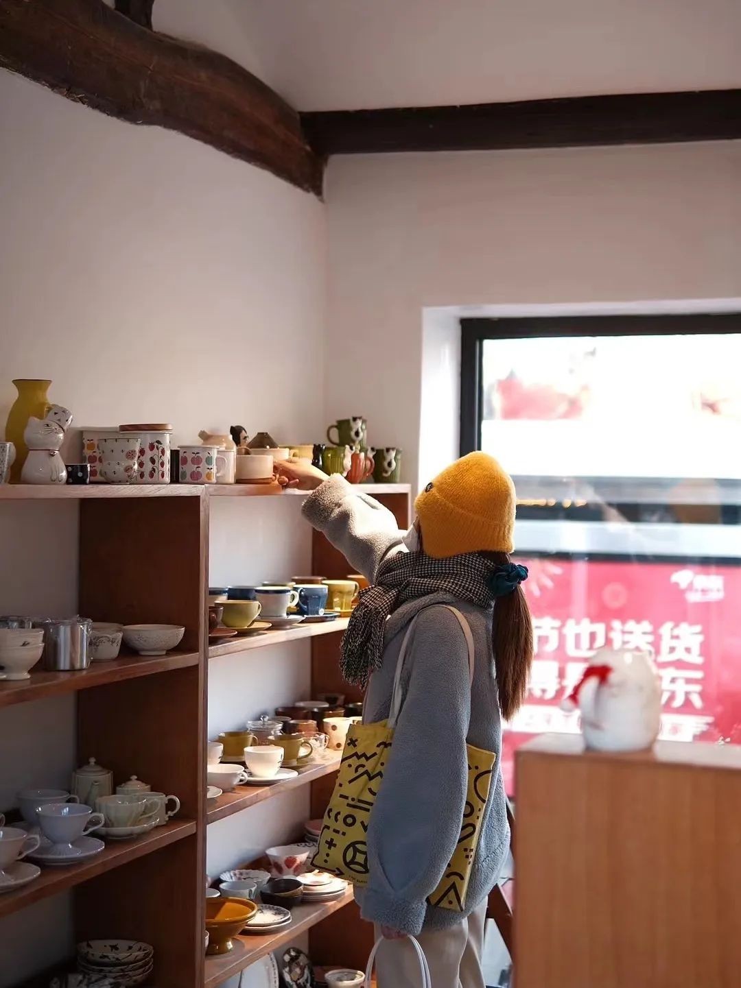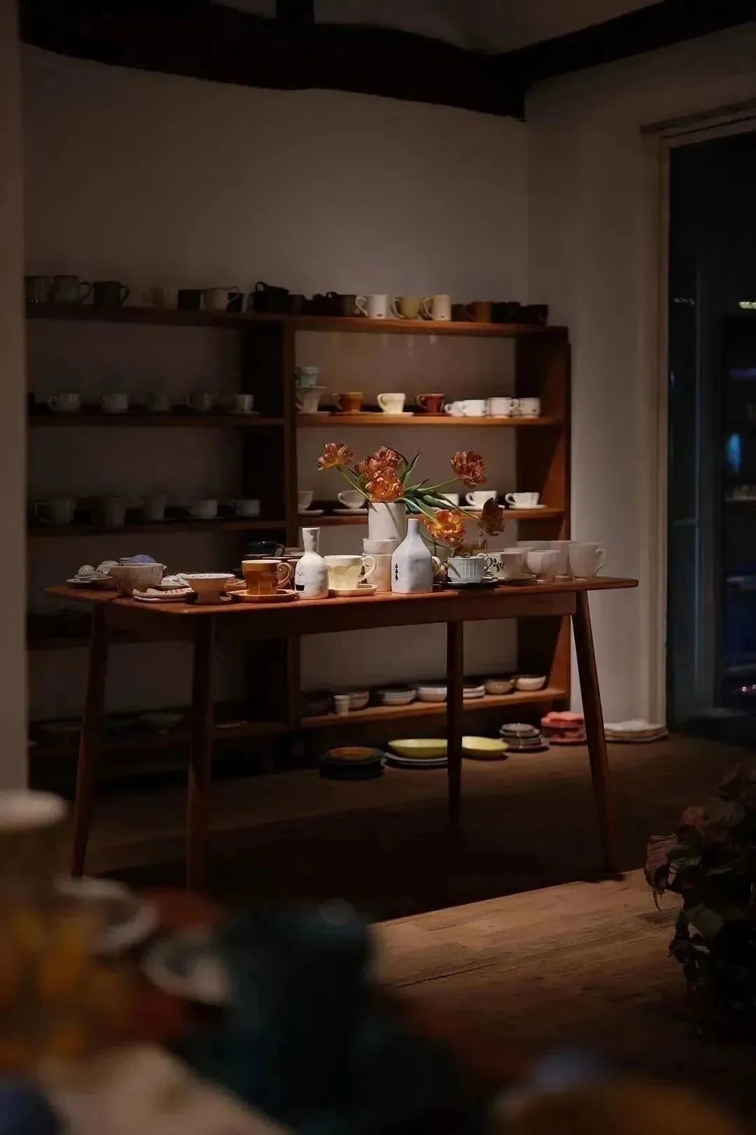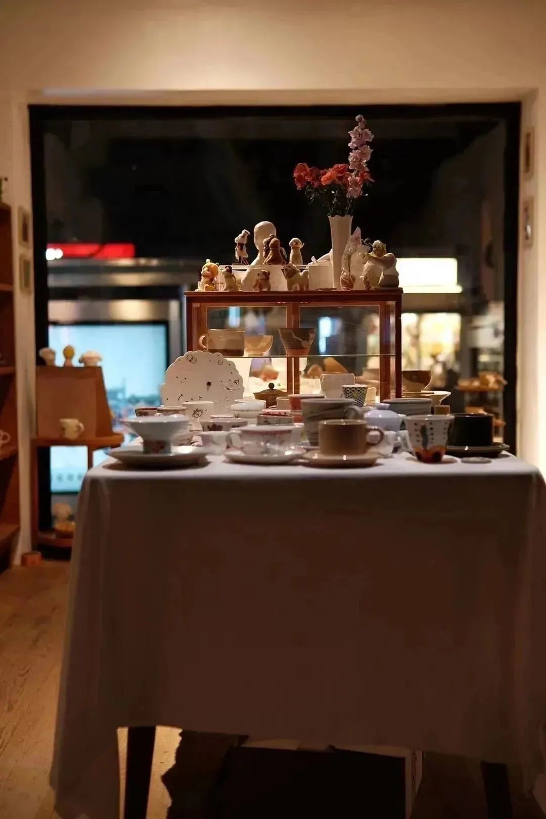 推门而入,空间不大但很有温度,靠墙摆着一排排木架子,中间的桌面铺着木质收纳盒,陈列着大大小小的物什,大到碗盘、花瓶,小到胸针、耳饰…满满当当,又次序分明,是那种静下心来可以待一下午的空间,每一隅都藏着惬意。