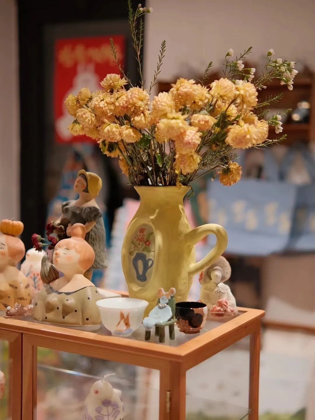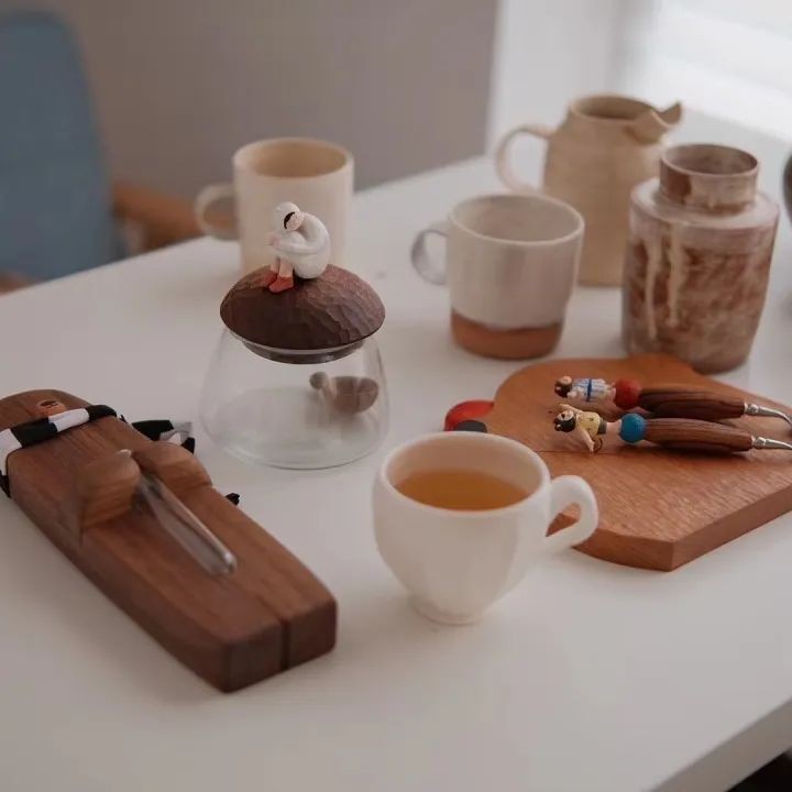 季明陈列的器物众多,头顶蝴蝶结闭眼冥想的小兔子,有着独一无二表情的杯子,怪趣味满满的花瓶…每一个都极具个性: