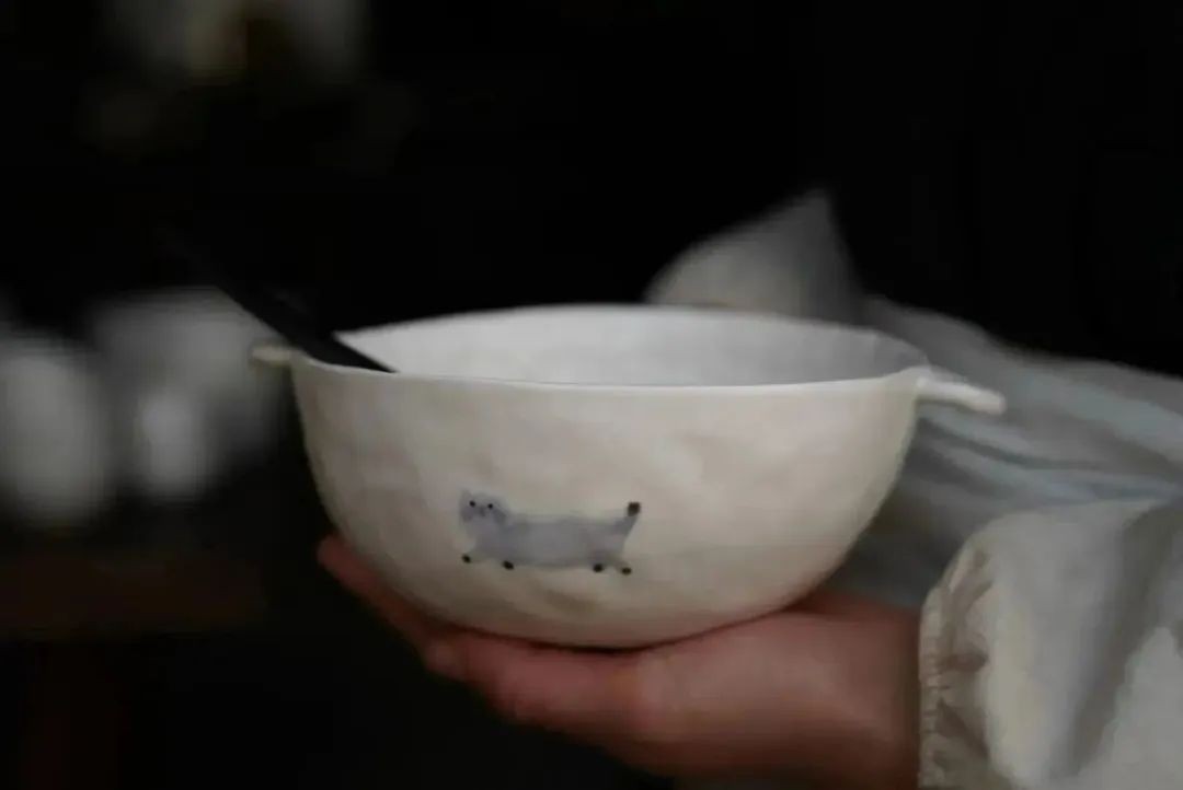 重视使用者的感受,是创作者的细腻,花鸦便是蒋蒋心里如此一样的人,白瓷的柔软、黑陶的坚毅,在她这里形成了更好的融合,而这些器皿带来的,还有她真正的生活状态,如家里有一只叫黑咪的猫,草丛里带着小鸡的母鸡妈妈,河里游泳的小女孩…拿到器物时手与器皿之间的痕迹相契合,仿佛那一瞬间与作者灵魂交汇。