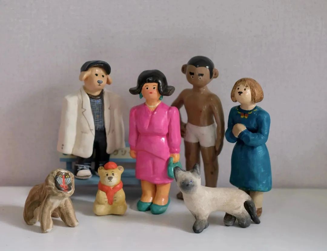 发财的作品里,能看到五彩斑斓的世界,每个动物都有着它们自己的职业属性,可以是兢兢业业的打工人、也可以是甜品店的员工、又或者是神秘的猫咪巫女…如她所言,没有把“可爱”作为标准,真心去感受动物和生活,可爱的其实是动物本身。治愈的人总能创造出治愈的作品,今年两人也彼此约了展出,一起期待下五百个玩偶所创造出来的“发财世界”吧~