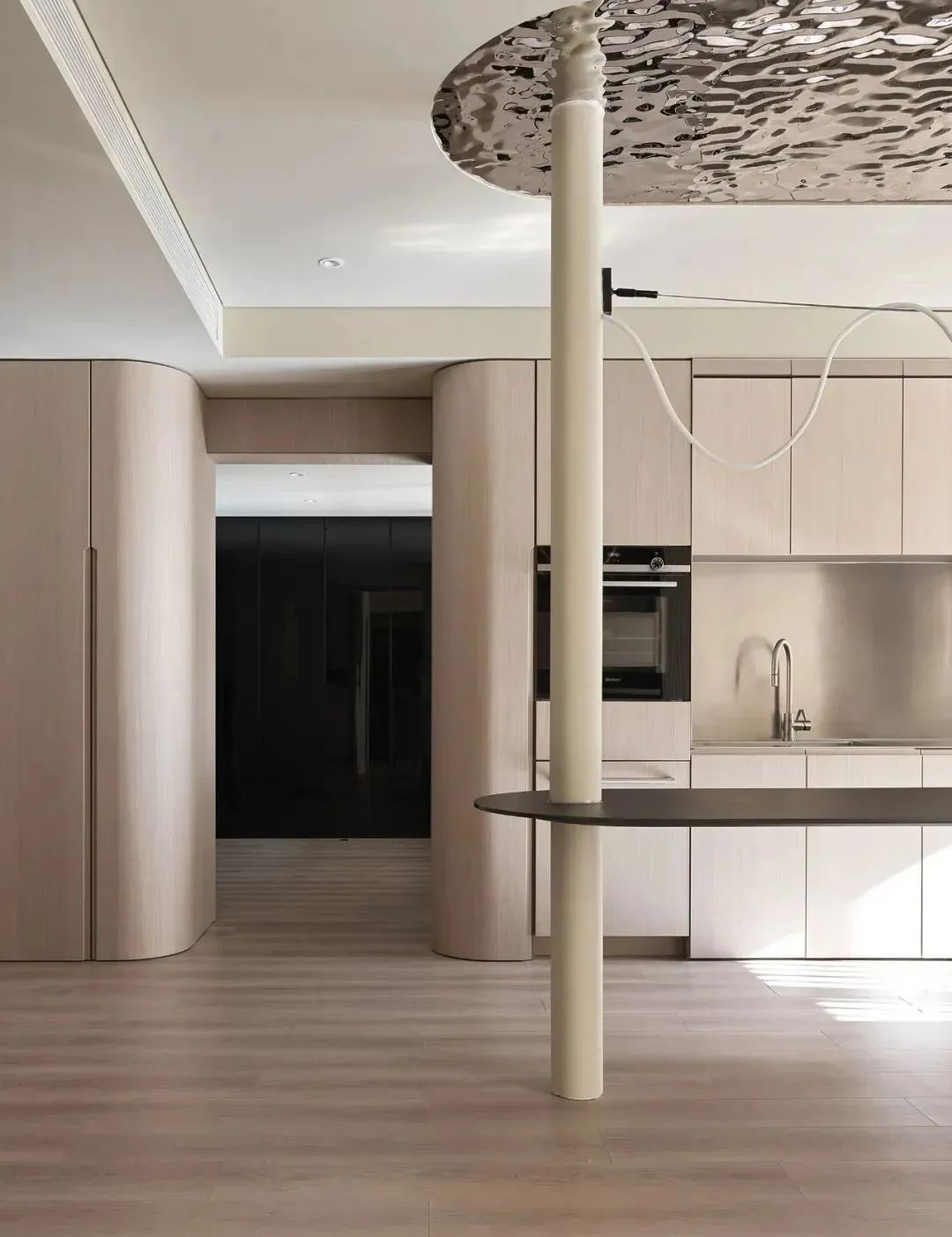 而境屿设计最近这套 200㎡ 的私宅设计中,就巧妙的在多个空间融入了不锈钢元素。
