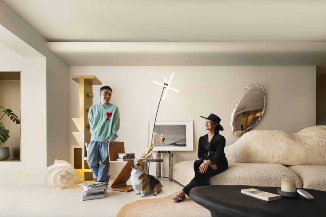 这是结案完成后,留下的一张屋主与母亲和爱犬旺仔的全家福,对于从事自媒体行业,热爱旅行、摄影、且喜欢仪式感的屋主来说,这个让家与艺术交相辉映的空间彰显了他对生活的期许。